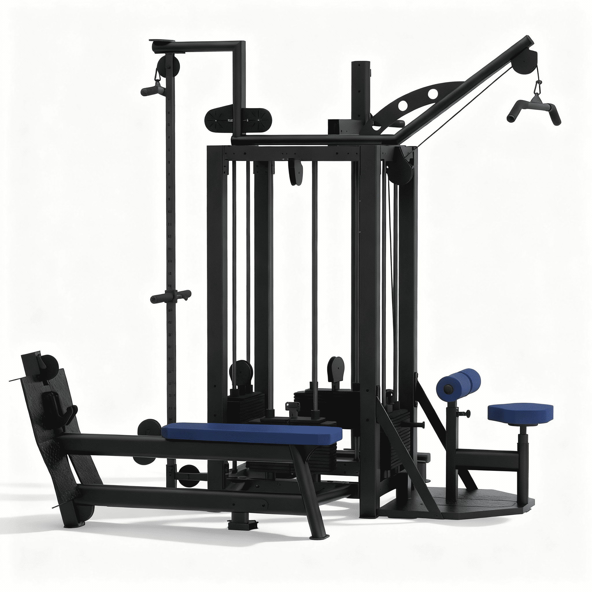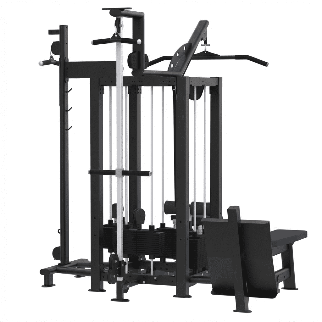 Afin d’optimiser le gain de place et les possibilités d’entraînement, il est également possible d’ajouter une station de cross comprenant une poulie réglable et une barre de traction. Cette station est idéale pour les petites salles.